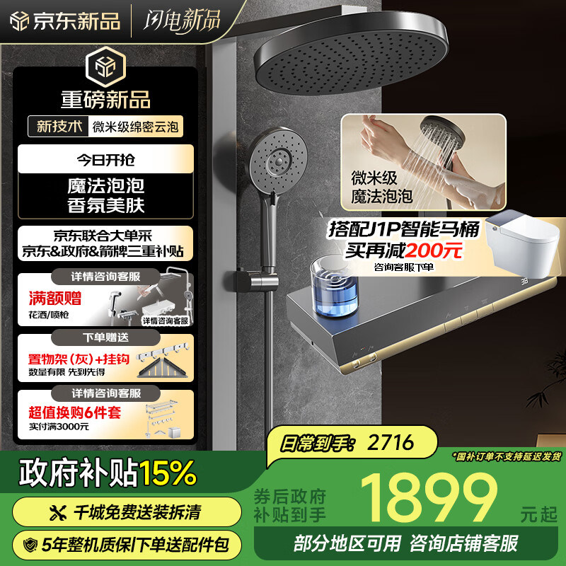 箭牌(ARROW)K880魔法泡泡琴键数显淋浴花洒套装家用多功能花洒AE33900GGW