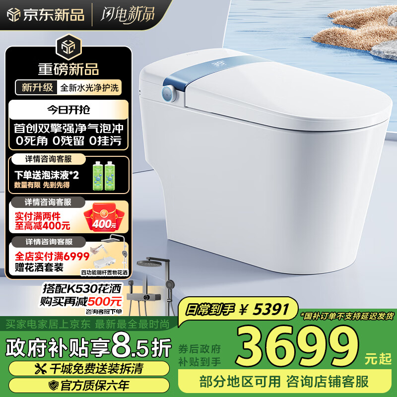 箭牌(ARROW)M50P智能马桶0水压旋风魔力泡自动翻盖坐便器AKE1186-PM 305坑距
