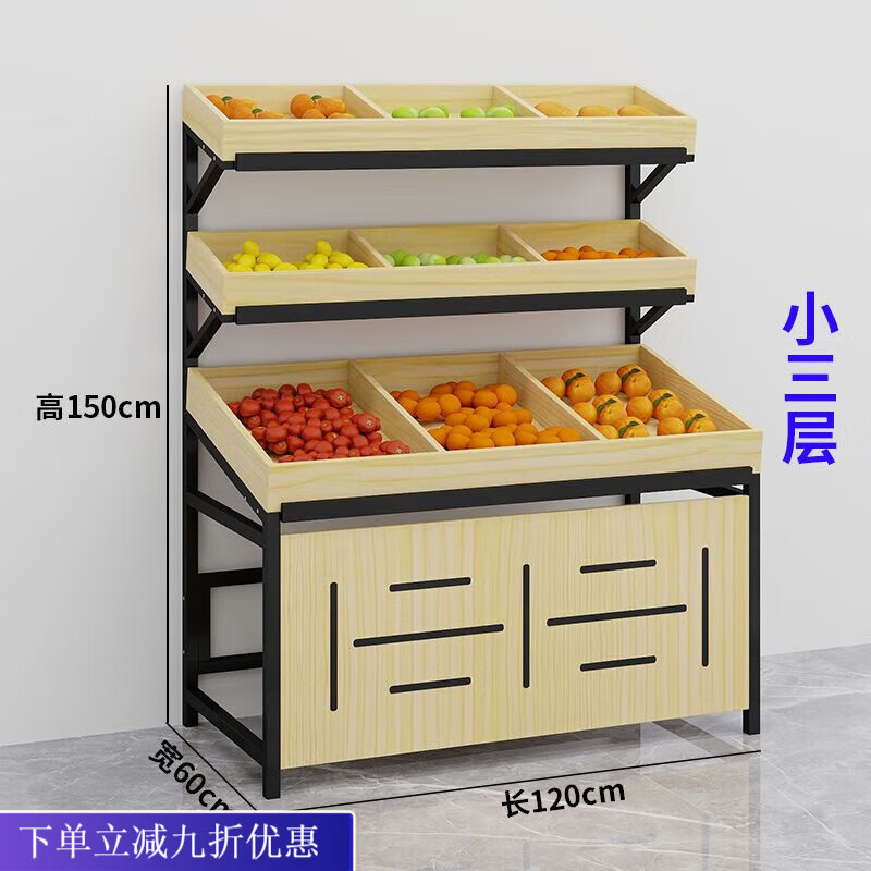 倘然之家新款水果货架展示架水果架子水果店商用创意多层多功能中岛蔬菜货 (原木色)小三层