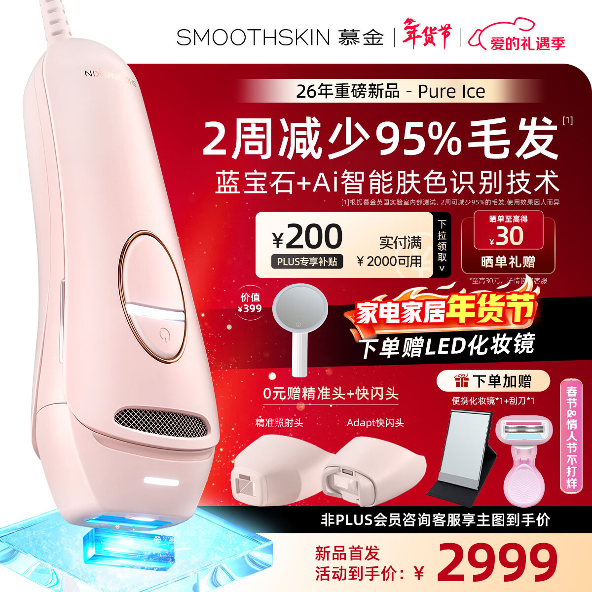 慕金【26年最新款】ICE蓝宝石脉冲光冰点无痛脱毛仪激光 全身私处腋下刮毛刀剃毛神器 高端情人节礼物