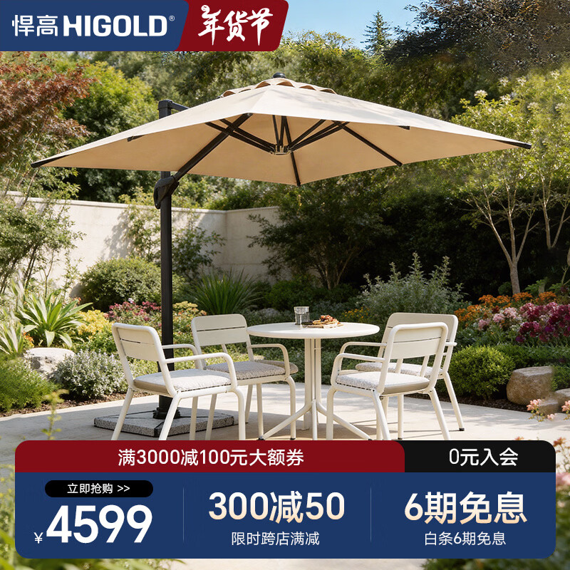 悍高(HIGOLD)云岚别墅庭院户外遮阳伞花园太阳伞阳台方形室外罗马伞露台不带灯 云岚【重磅新品-大理石底座】