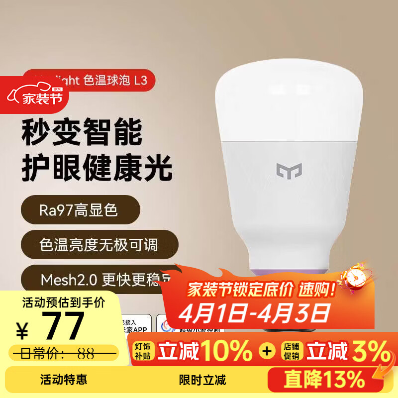 Yeelight易来色温球泡无极调光调色节律照明蓝牙mesh 2.0灯泡L3 灯泡L3
