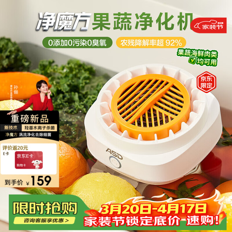 爱仕达(ASD)净魔方纯钛果蔬清洗机水果蔬菜肉类小型净化器电解片超长续航无线充电 可清洗净化农残降解重金属