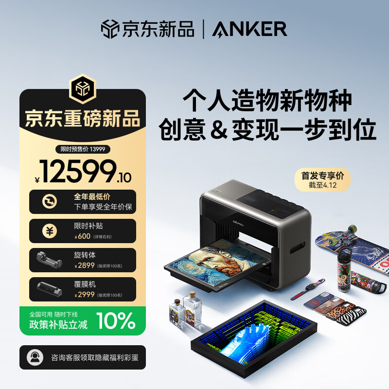 ANKER安克立体纹理百万色全彩打印喷绘印刷eufyMake UV浮雕打印自清洁3D打印全自动安克UV打印机E1