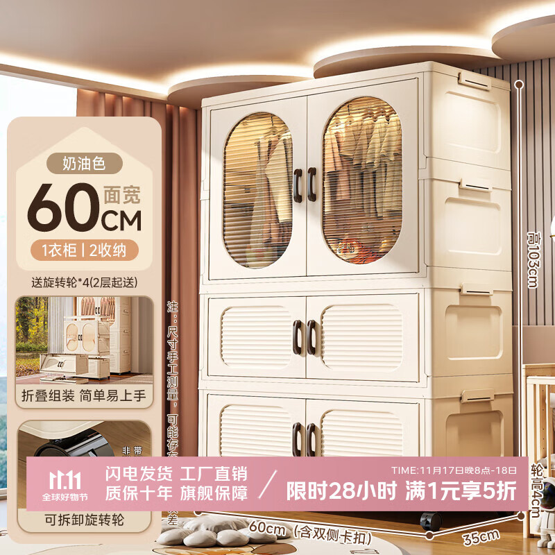 纳份爱儿童衣柜宝宝衣服整理箱婴儿小衣橱塑料家用简易储物收纳柜 60面宽【1衣柜+2收纳箱】 【加厚材质安全无异味】