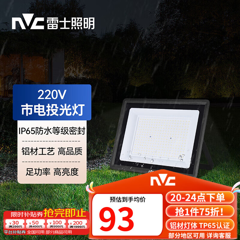 雷士(NVC)LED投光灯泛光灯户外庭院灯工厂照明园林灯露营灯 IP65防水6500K 100W+白光+照约50m²