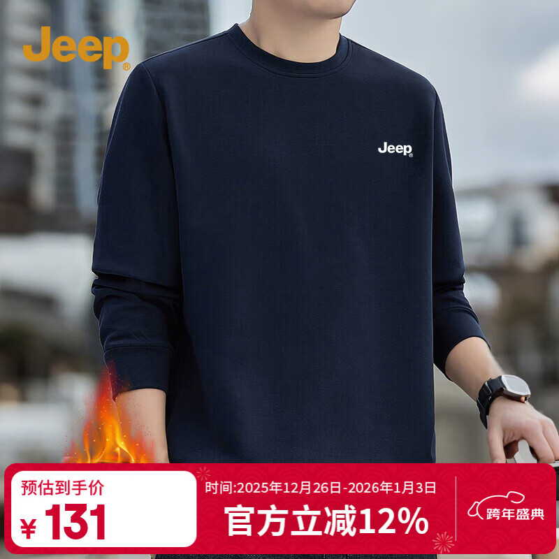 JEEP吉普圆领加绒卫衣男士冬季防风保暖商务圆领外套高端耐磨厚款男装