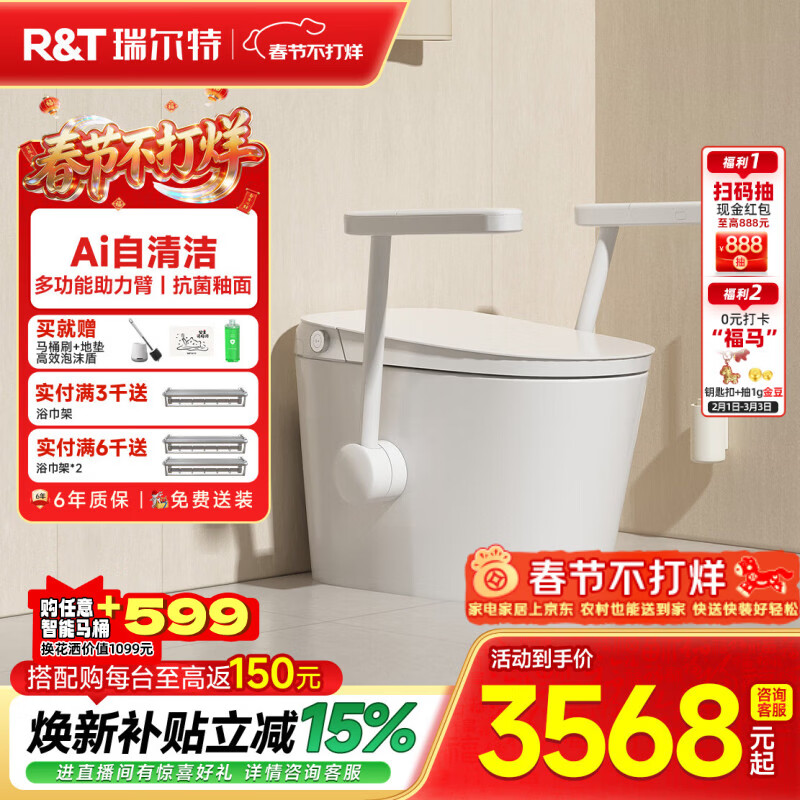 瑞尔特(R&T)轻智能马桶全家福系列全自动脚翻AI自清洁多功能助力臂抗菌马桶 全家福lite 305/300mm
