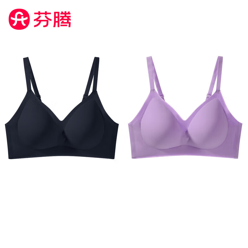 芬腾无痕内衣女小胸聚拢防外扩舒适弹力收副乳无钢圈防下垂睡眠文胸罩 黑+紫 M