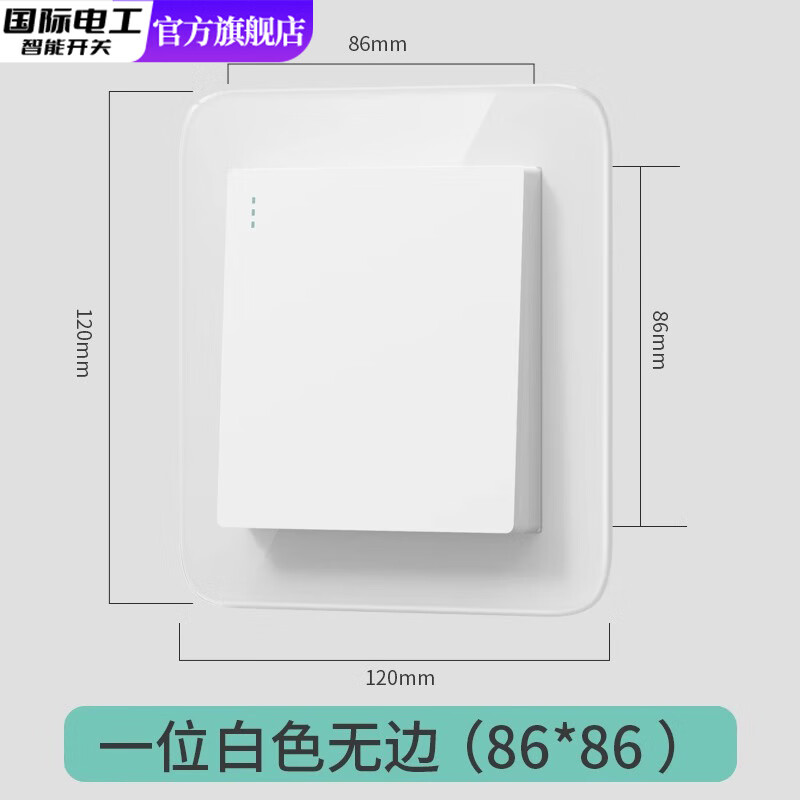 国际电工现代简约窄边轻奢高端亚克力开关贴开关保护套开关灯装饰套插座 白色无边贴【86*86mm】 开关
