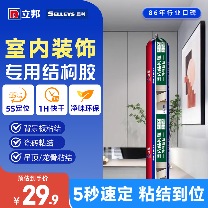 立邦室内结构胶强力高粘度快干型背景板装饰瓷砖专用密封胶玻璃胶 【净味快粘】室内结构胶白色-无工具