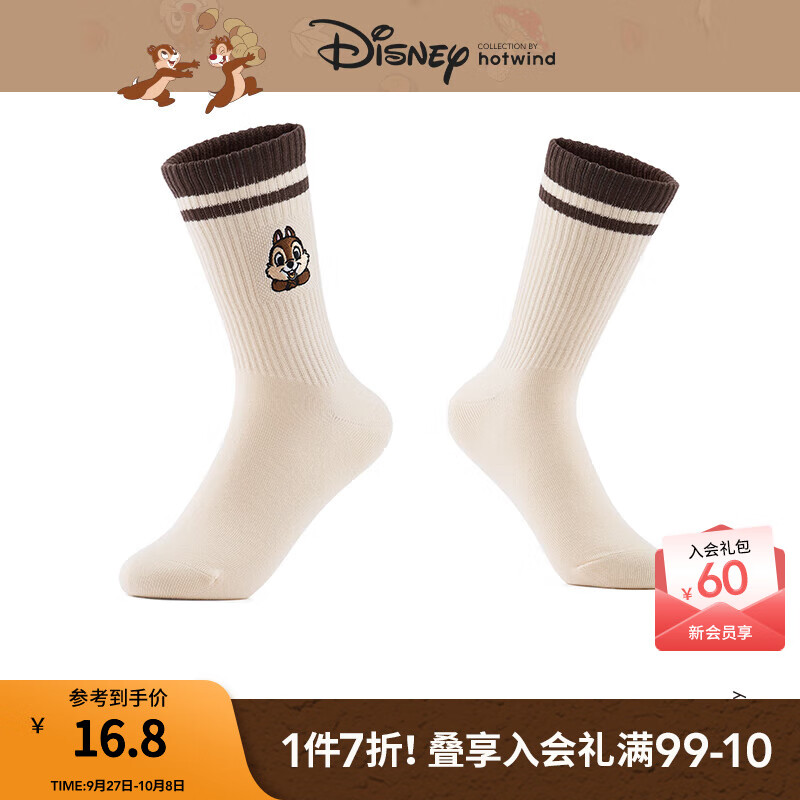 热风(Hotwind)【迪士尼系列】2025年秋季新款女士奇奇蒂蒂抽橡筋高帮袜 03米色 1双 均码