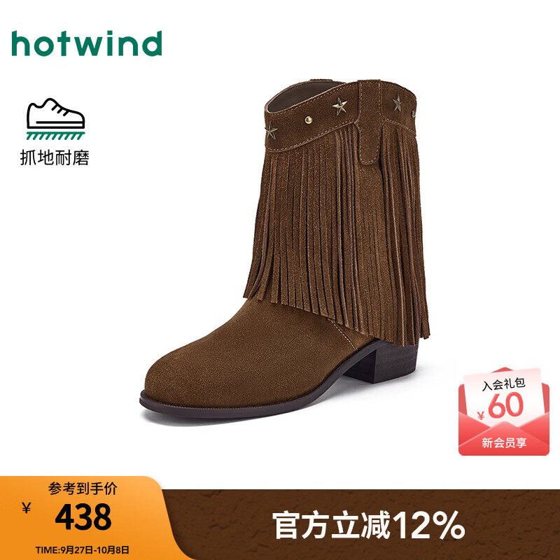 热风流苏西部靴女2025年秋季新款棕色美拉德短靴百搭牛仔靴子女鞋 02棕色 36