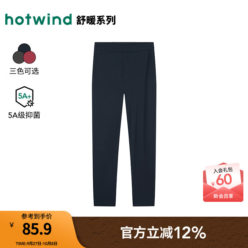 热风(Hotwind)2025年冬季新款男士舒暖薄绒打底裤 29藏青兰 L