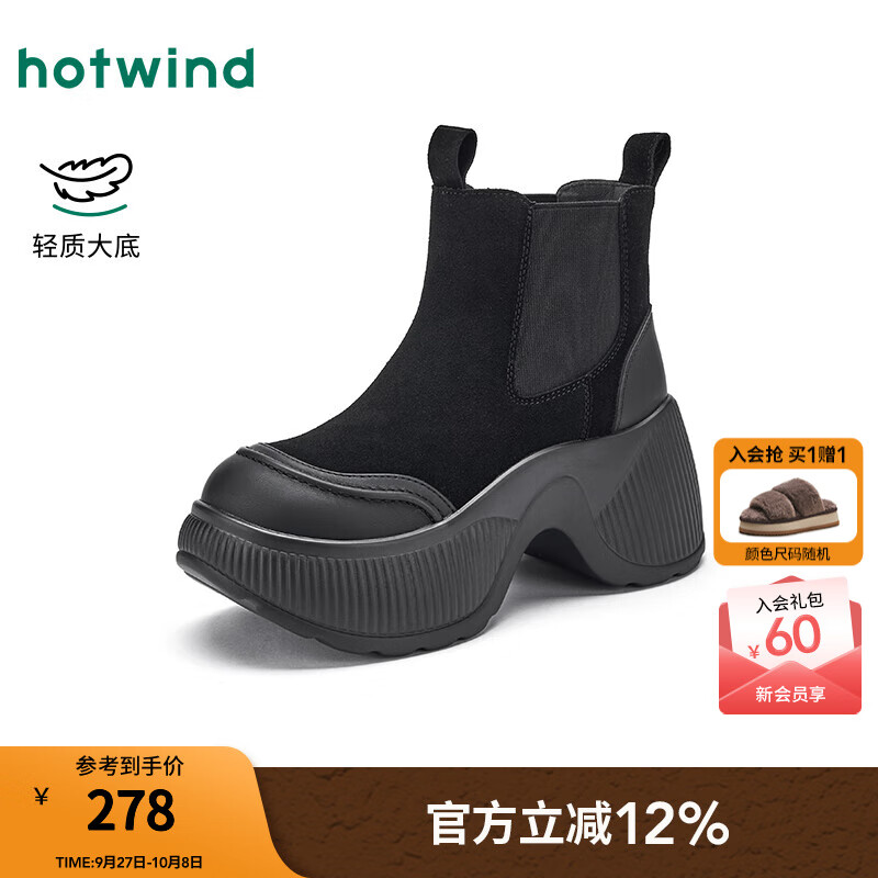热风厚底时装靴女2025年冬季新款小个子增高短靴百搭马丁靴子女鞋 01黑色 38