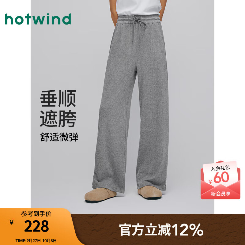 热风【商场同款】女士直筒卫裤25年秋新款松紧腰宽松舒适阔腿裤长裤 09灰色 M