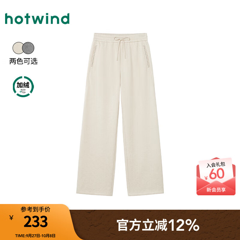 热风(Hotwind)【商场同款】女士加绒卫裤2025年冬季新款舒适直筒裤通勤宽松长裤 03米色 (加绒) S