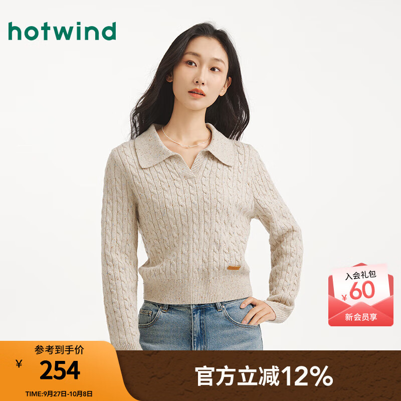 热风【商场同款】女士针织衫翻领老钱风毛衣2025年秋新款花纱绞花上衣 03米色 XL