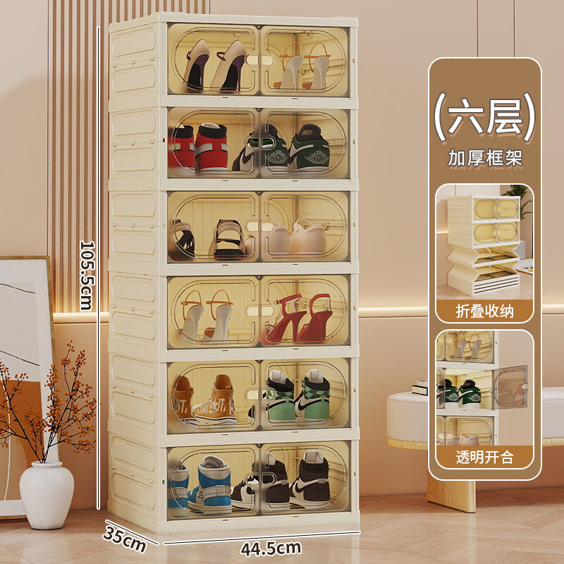 纳份爱免安装鞋盒家用鞋柜门口入户柜折叠鞋架收纳盒靠墙鞋子收纳神器 米白六层(可放24只鞋子) 【磁吸开盖/可放48码AJ鞋】