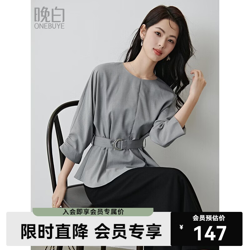 晚白【新品】2026年春款格雷系气质通勤设计感上衣系带收腰小廓形衬衫 浅灰色 L