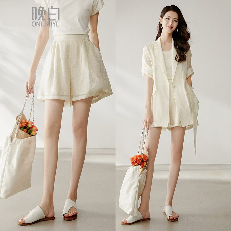 晚白【新品】2026年春款时尚松紧高腰裤子莱赛尔亲肤轻薄短裤女 米白色 27