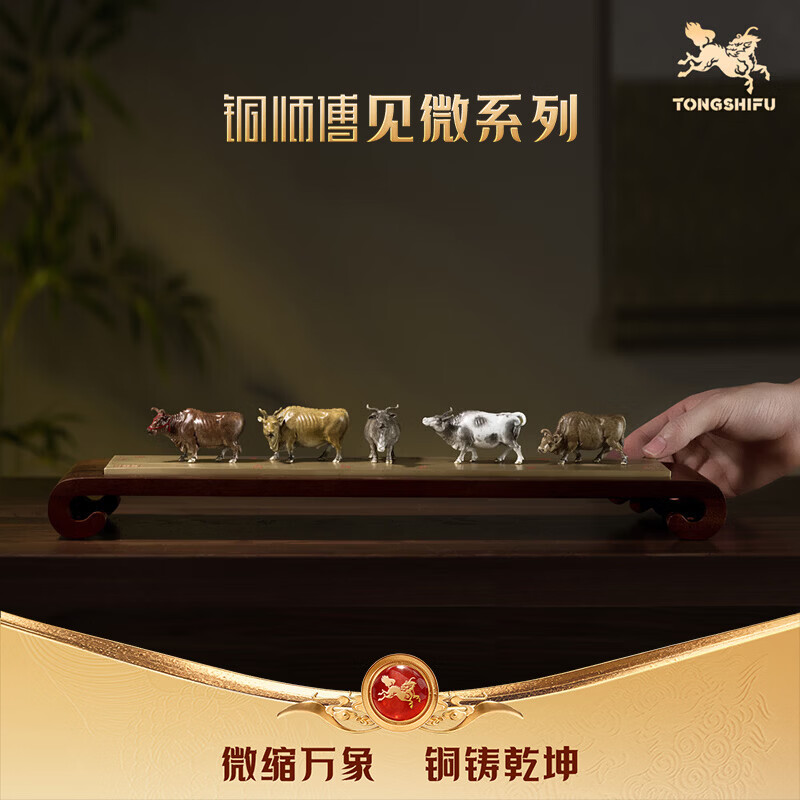 铜师傅见微系列《五牛迎福》办公室铜牛摆件 家居装饰工艺品