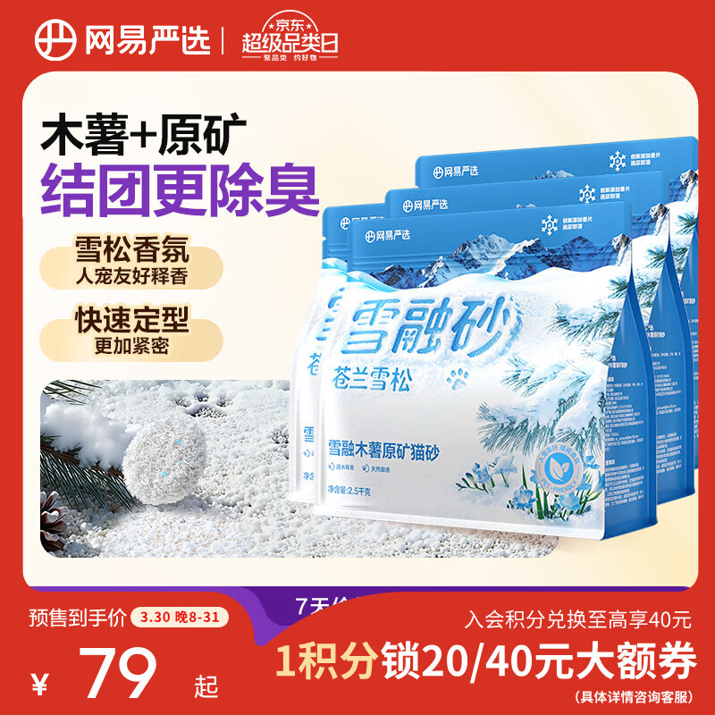 网易严选雪融木薯猫砂人宠友好除臭香氛不粘底除味无尘植物猫砂快速结团 雪融木薯原矿砂 2.5kg*4袋