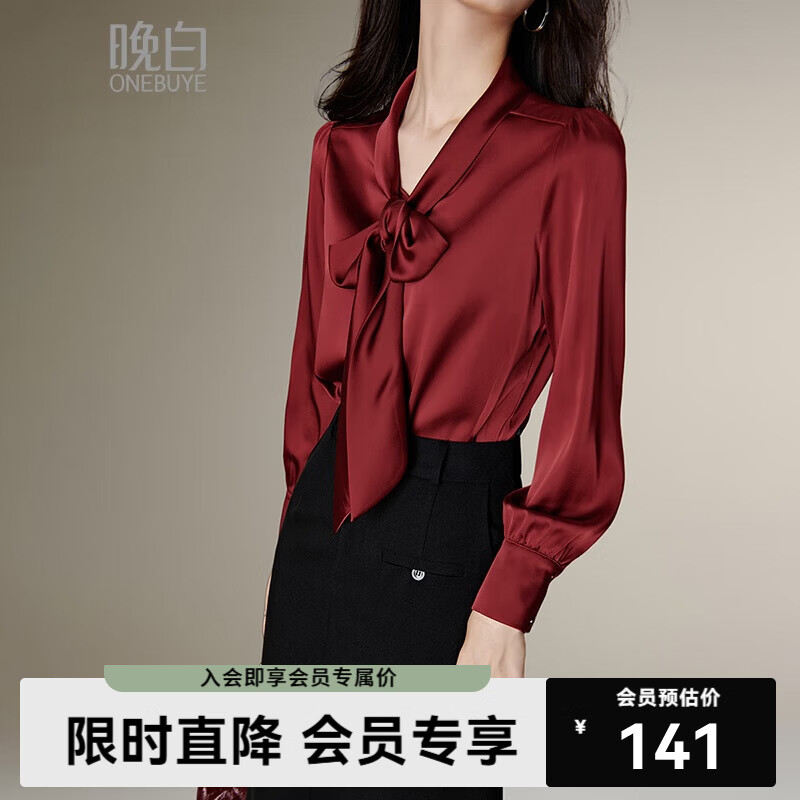 晚白【新品】2026春款通勤职业系带蝴蝶结衬衫骐骥红百搭衬衣上衣女 暗红色 M