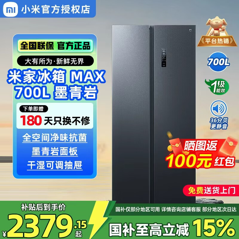 米家小米700L对开门冰箱一级变频超大容量家用除菌净味京东BCD-700WMSA MAX700L 墨青岩