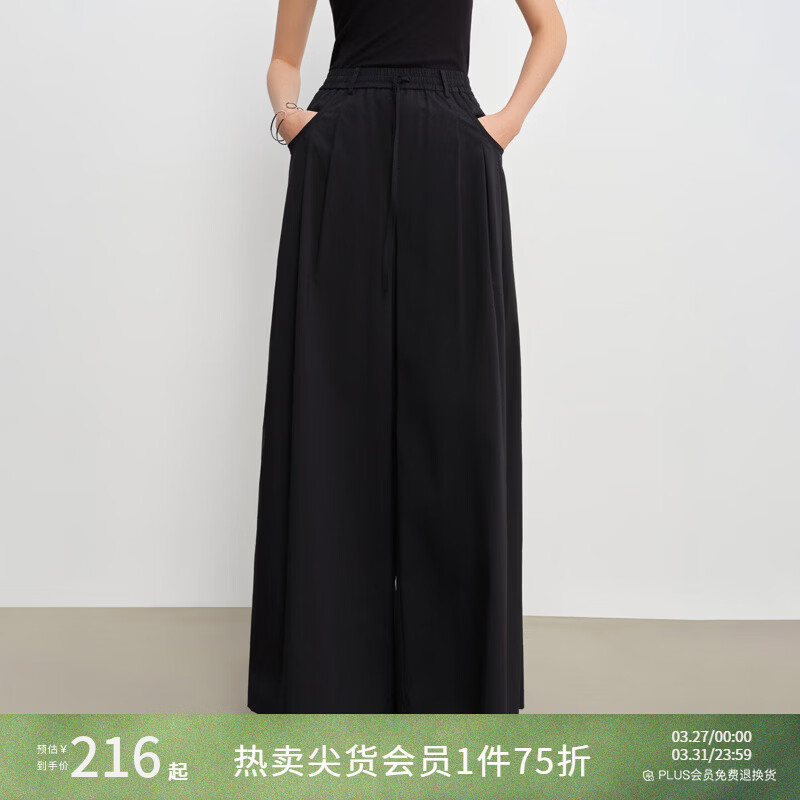 自巧巧型裤小个子休闲挺括工字褶裙裤女阔腿裤松紧腰2026春季新品 谧黑色 XXS (尺码:1)