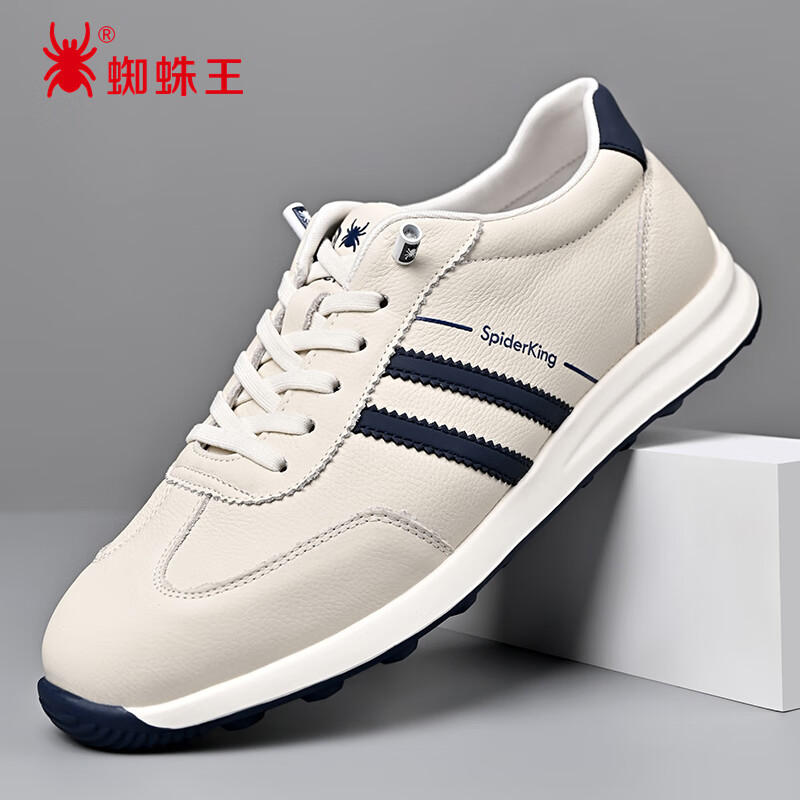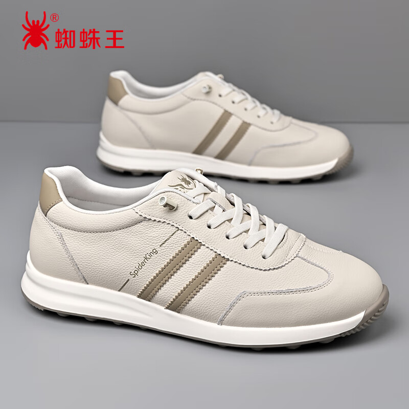 SPIDERKING蜘蛛王男鞋秋季运动休闲鞋男士阿甘鞋男款复古德训鞋 白-卡其 41