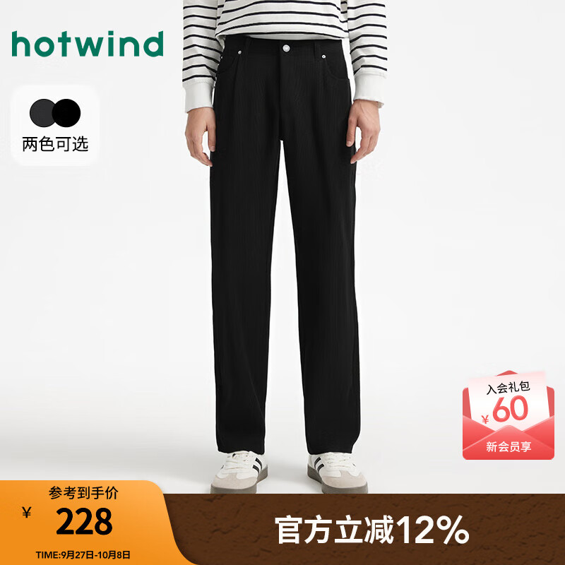 热风(Hotwind)男士休闲裤直筒长裤2025年冬季新款商务百搭正装通勤长裤 01黑色 XL