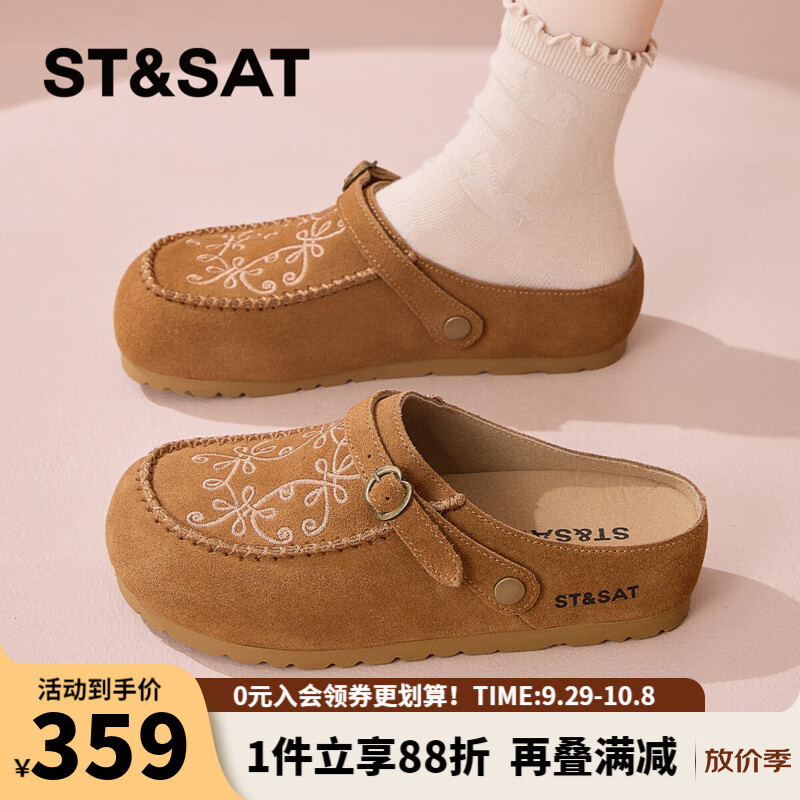 星期六圆头厚底舒适包头拖鞋2025秋季新款百搭勃肯鞋MTSSD3110C40 驼色 39