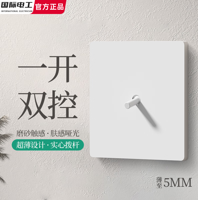 国际电工86型暗装超薄拨杆开关插座面板意式奶油白色哑光复古极简侘寂风 一开(单/双控通用)【白杆】