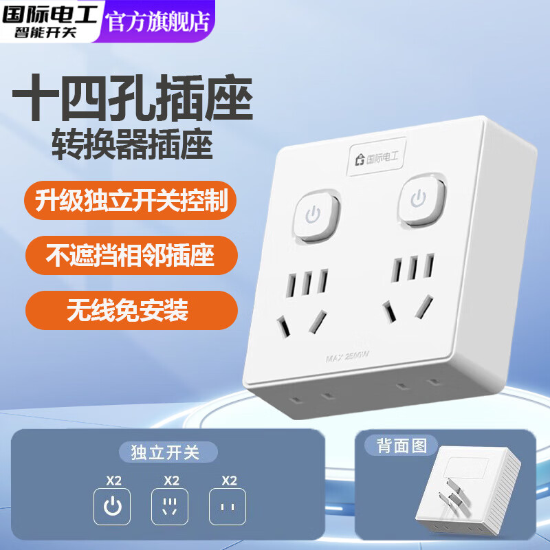 国际电工86型多功能一转多扩展插座转换器伸缩线USB+type-c插孔伸缩线插头 86型一转二位七孔二键分控白 插座