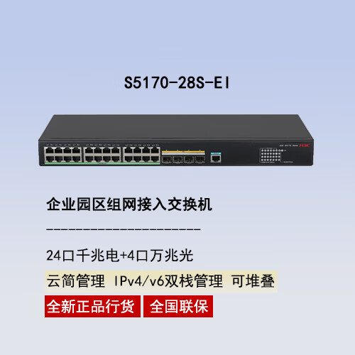 华三S5170-28S-EI千兆接入企业级交换机 24千兆电+4万兆光可堆叠 办公园区组网智能型可网管