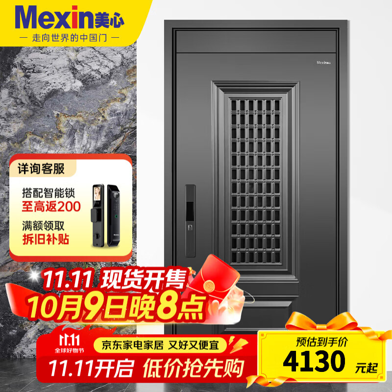 美心(Mexin)通风防盗门家用安全门入户门进户门加高门头智能锁防盗防撬定制门锌合金暗铰链CX81 单门外开2050*960 机械锁
