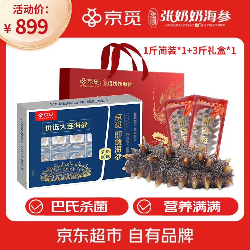 京觅大连即食海参4斤礼盒套餐 海鲜水产 高品质无污染 送礼 囤货