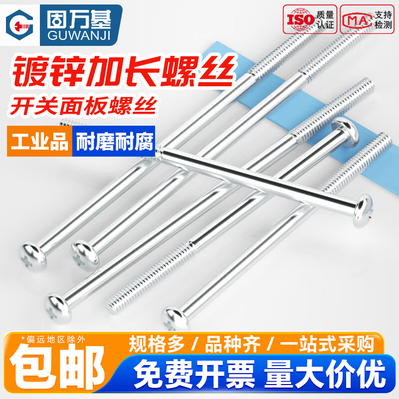 固万基斤装开关插座面板加长螺丝86型通用圆头十字螺栓电工厨房卫生间用 铁彩锌 12公分(100个)
