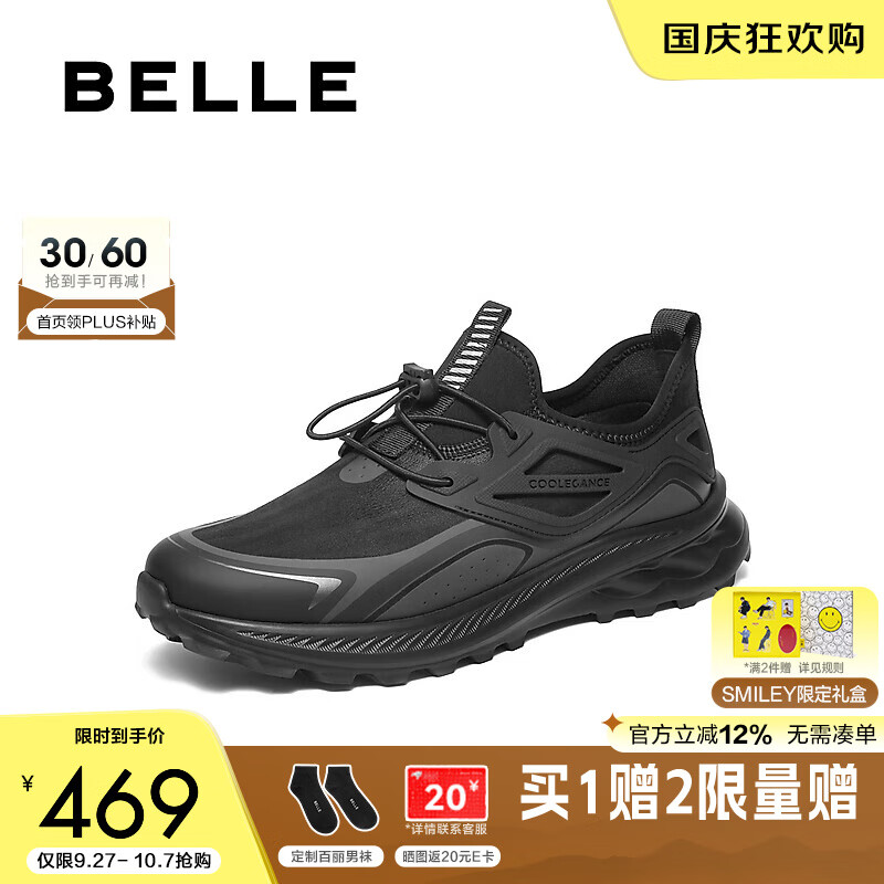 百丽轻盈厚底健步鞋男2025新款秋商场同款户外休闲运动鞋8VP01CM5 黑色 42 (260mm)