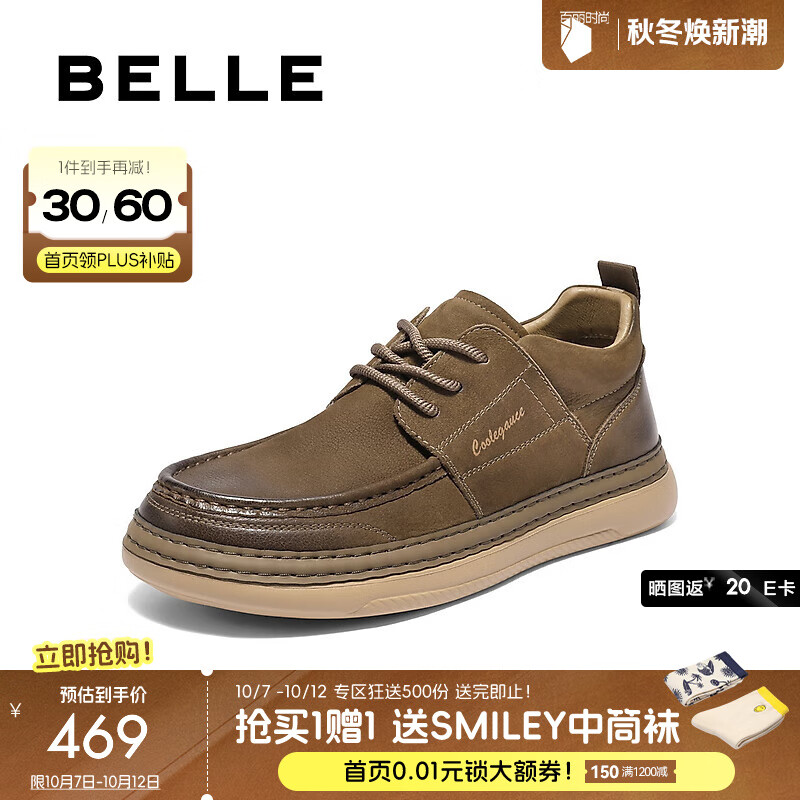 百丽(Belle)张凌赫同款高帮休闲工装鞋男2025冬季新复古板鞋加绒A2184DM5预售 卡其色-绒里 43 (265mm)