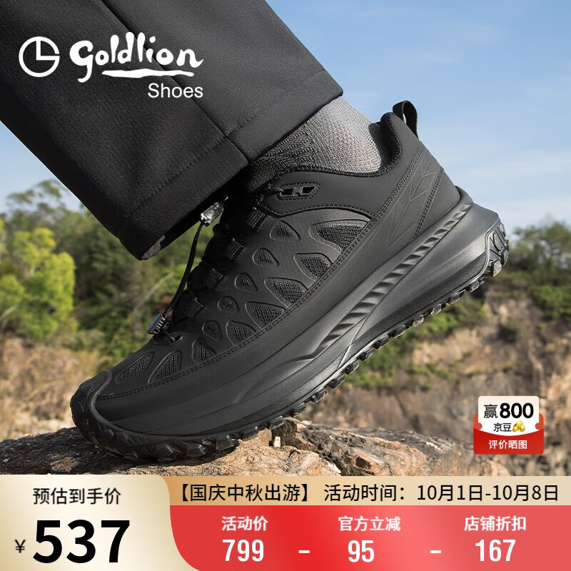 金利来(Goldlion)男鞋25年新款户外登山鞋耐磨防滑男士运动鞋G570510389AAE黑色41