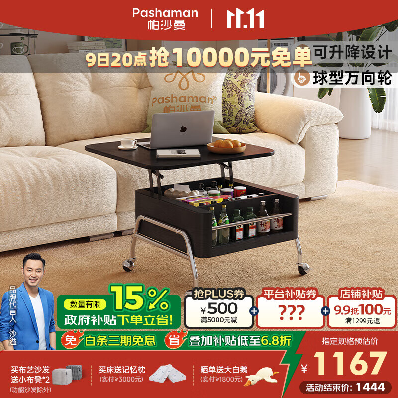 帕沙曼轻奢升降可移动茶几桌茶桌子多功能储物小户型客厅家用边几 6419Y 【极简黑】可升降多功能茶几 设计师新款