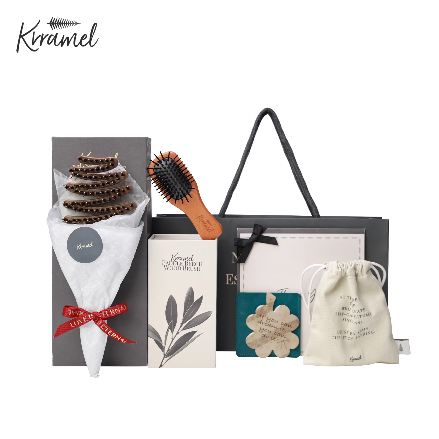 KRRAMEL生日礼物女士品牌纪念天然猪鬃毛梳子送闺蜜情侣新婚礼物 梳梳如意【中号松塔梳】