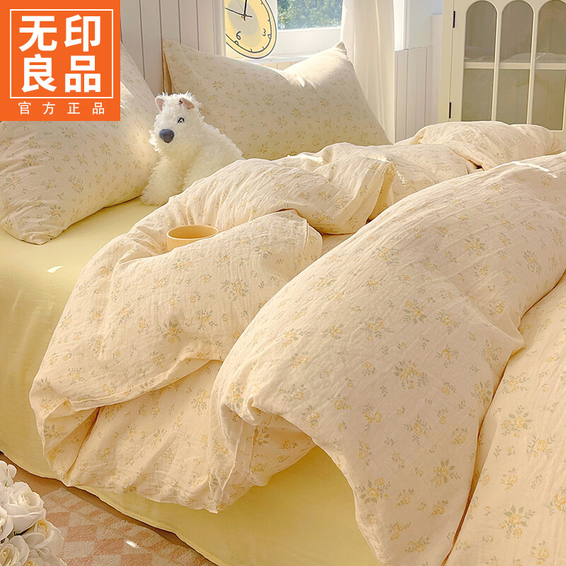无印良品a类双层纱全棉床上四件套纯棉四季通用床单被套三件套床笠款床品4 晴丝一缕【A类全棉双层纱 亲肤裸睡】 1.8m 床单款 四件套-被套200*230cm