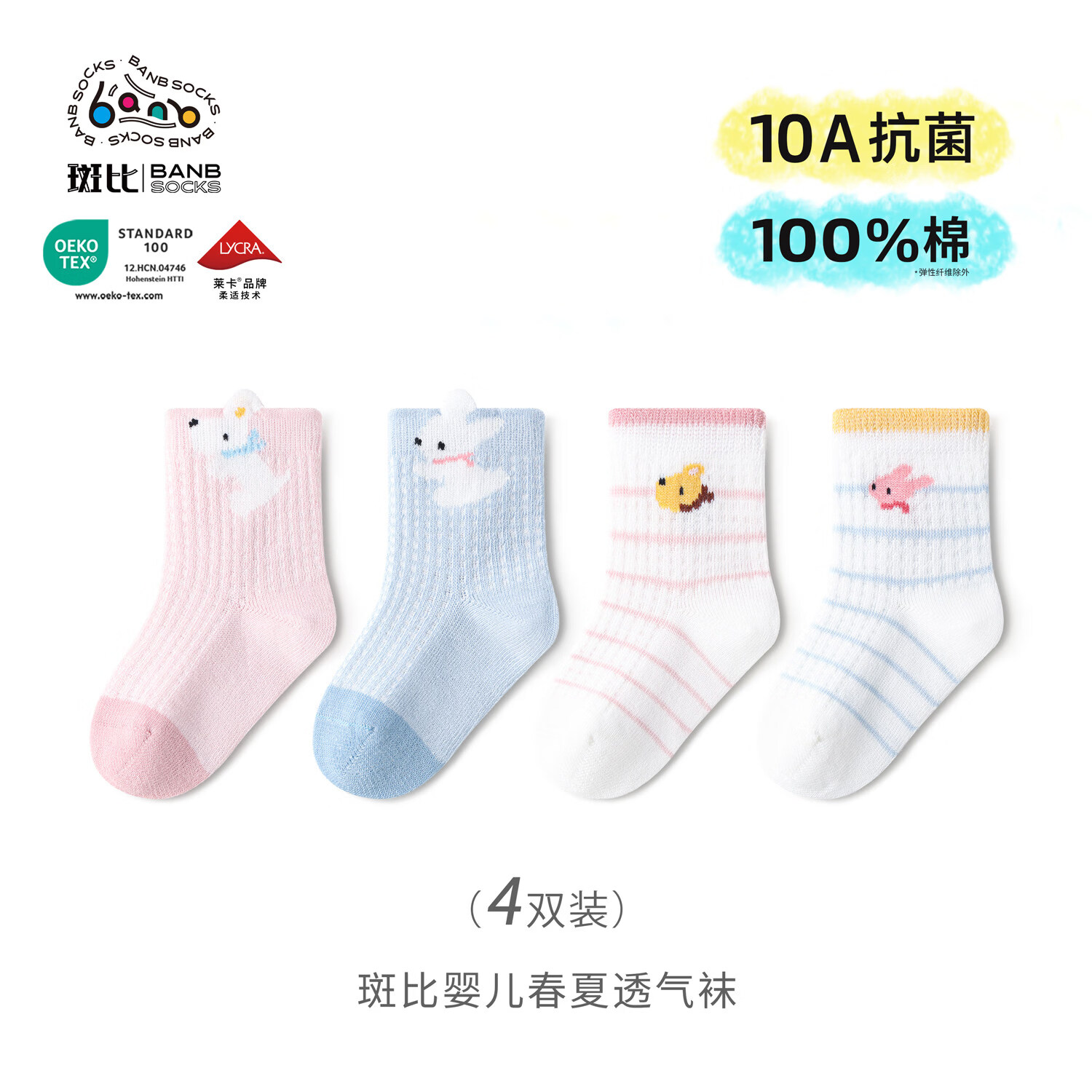 斑比夏季薄款婴儿袜子纯棉网眼透气新生儿抗菌袜女宝宝无骨袜 B459 春夏款婴儿袜子 4双 2-3岁 底长11.5-12cm【12-14】