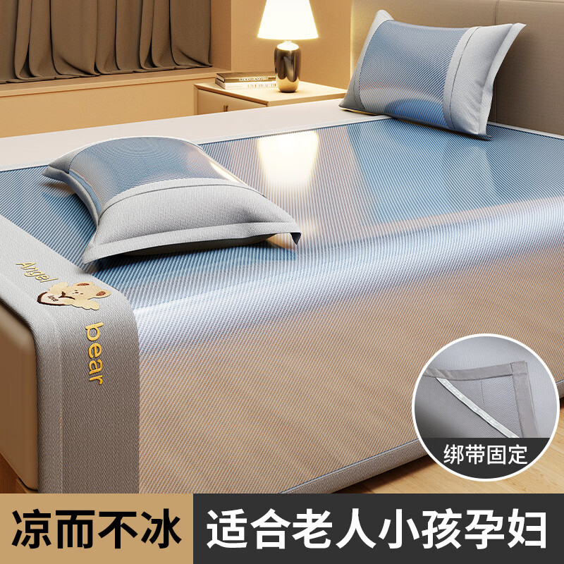 高睿A类母婴级冰丝凉席可机洗夏季2026新款夏天软竹席子婴儿可用 【床笠款】欢乐熊冰丝蓝 120cmx200cm凉席+1只枕套