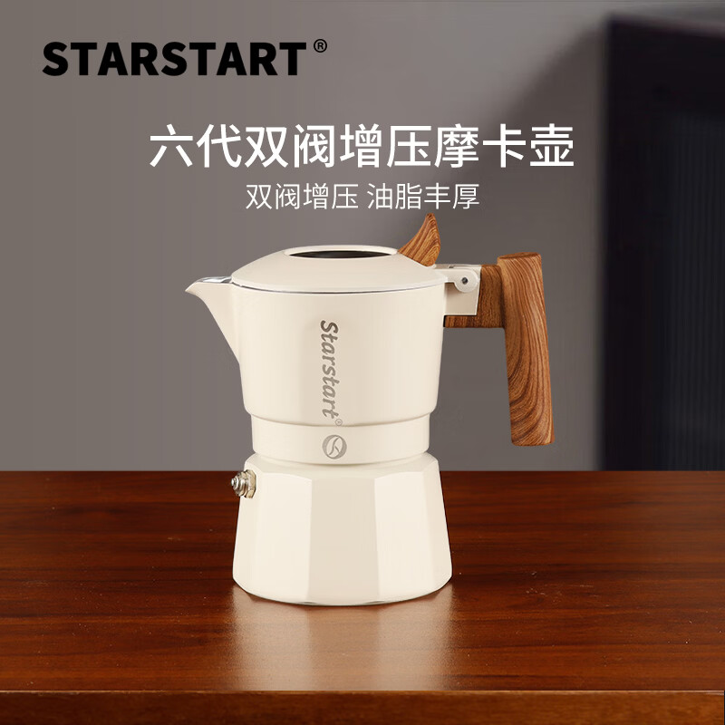 STAR-START双阀摩卡壶套装家用第六代增压小型煮咖啡壶意式浓缩萃取咖啡机 白色摩卡壶 双阀 2人份-单壶