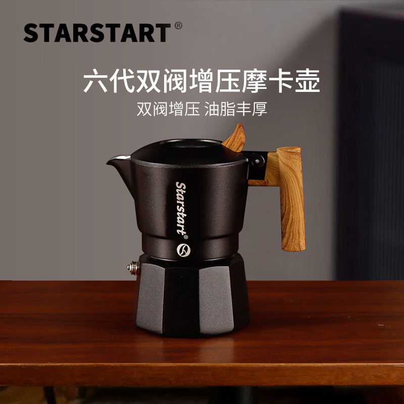 STAR-START双阀摩卡壶套装家用第六代增压小型煮咖啡壶意式浓缩萃取咖啡机 黑色摩卡壶 双阀 2人份-单壶