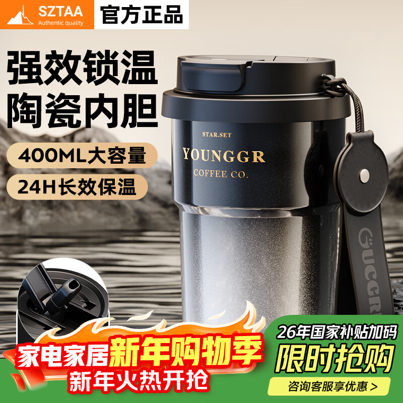 SZTAA保温杯高颜值咖啡杯2025新款男女士水杯便携式吸管杯子送生日礼物 星空渐变【双饮吸管+抗菌316】450ml